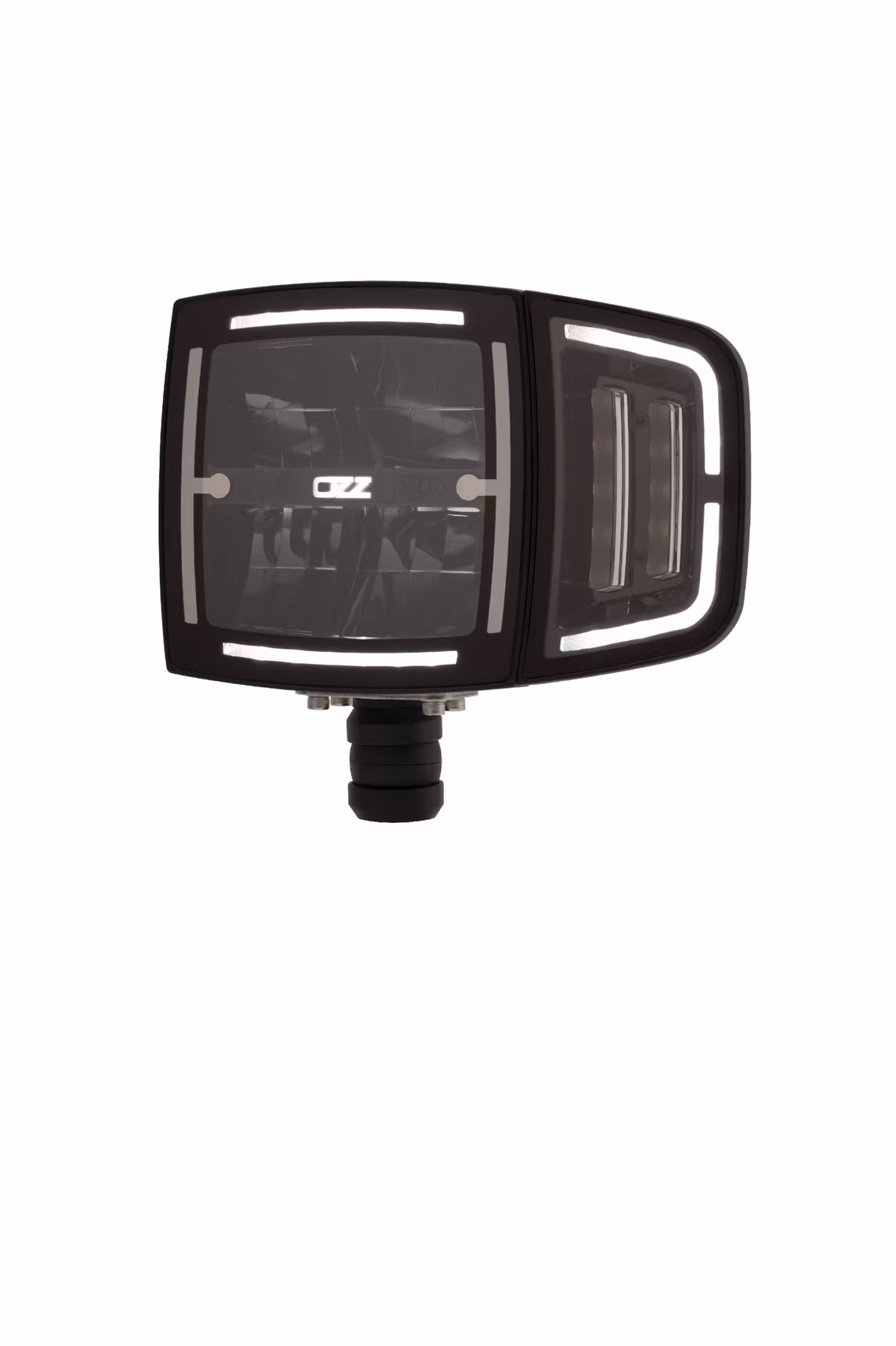 OZZ brøytelys LED høyre/venstre 10-30V med nærlys, fjernlys og parklys med varme i glasset. (Automatisk varmeelement som kobler seg inn ved 4 grader C.) Leveres med blinklys som kan festes på siden. Leveres med 6-pin DT-kontakt bak, motpart følger med. Dim:150 x 150mm (215mm med blinklys), dybde 85mm. Høyde til brakett 176mm. Kelvin: 5000. Nærlys 1700LM, 183m, 1 lux. Fjernlys 3100LM, 365m 1 lux. ref. 25. ECE R112/R6, R10, CE, RoHS. IP69K. Strømtrekk 12V 2 Amp nærlys- 4 Amp fjernlys, varmeelement 1,9Amp. Leveres med gult deksel i esken.